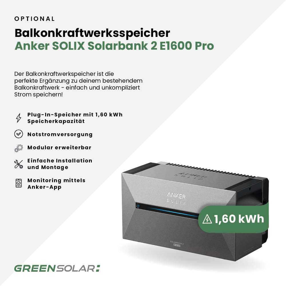 Die Anker SOLIX BP2700 ist die ideale Erweiterung für dein bestehendes Solarspeichersystem und bringt mit 2,68 kWh zusätzlicher Kapazität mehr Unabhängigkeit in deinen Energiealltag. Dank der unkomplizierten Plug&Play-Verbindung wird die Erweiterungsbatterie nahtlos mit der Master-Einheit gekoppelt und sorgt im Handumdrehen für mehr Speichervolumen – ideal für Haushalte mit steigendem Strombedarf. Durch die integrierte AnkerIntelligence™-Technologie analysiert der Speicher Verbrauchsmuster, Strompreisentwicklung und Wetterdaten, um den idealen Lade- und Entladezeitpunkt zu bestimmen. So nutzt du deinen Solarstrom nicht nur effizienter, sondern profitierst auch finanziell – zum Beispiel beim Laden deines E-Bikes, genau dann, wenn Strompreise besonders niedrig sind. Ein deutschsprachiger Support von Anker steht dir bei Fragen jederzeit zur Seite.