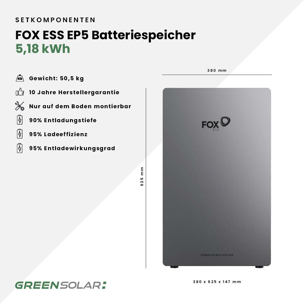 - 1x Fox ESS EP5 mit 5,18 kWh Speicherkapazität